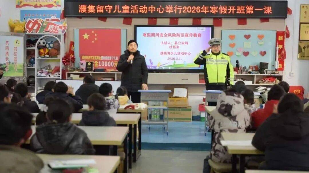 近日,濮集留守儿童活动站2026寒假开班第一课开课,和县交警队杜昌来警官主讲交通、防火、网络安全,引导孩子学安全、传安全。大学生志愿者则带来AI入门知识与趣味数学分享。